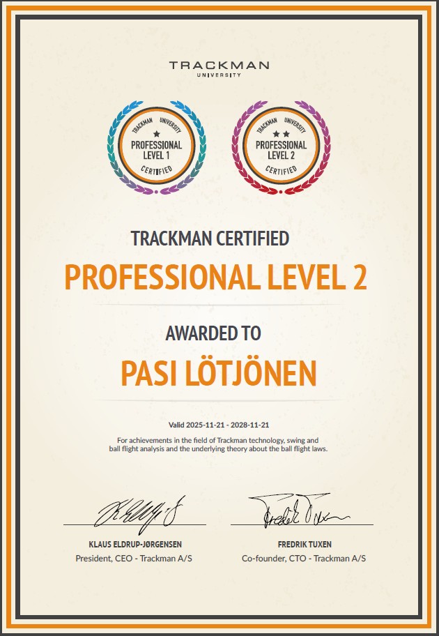 Ta golfspillet ditt til neste nivå – uansett hvilket nivå du er på som golfspiller vil en Protime med vår PGA Professional passe for deg! • Pasi vil tilpasse hver enkelt Protime til det nivået, kunnskapen og interessen hver enkelt spiller har. På alle individuelle leksjoner bruker Pasi aktivt TrackMan data, videoanalyse og rapporter – dette for sikre ditt utvikling som golfspiller • Ved kjøp av en Protimepakke – det settes opp et individuelt tilpasset program som blir skreddersydd til dine ønsker, ambisjoner og mål • Ta kontakt med «vår pro» via e-post pro@kongsberggolf.no og avtal din neste Protime allerede i dag!