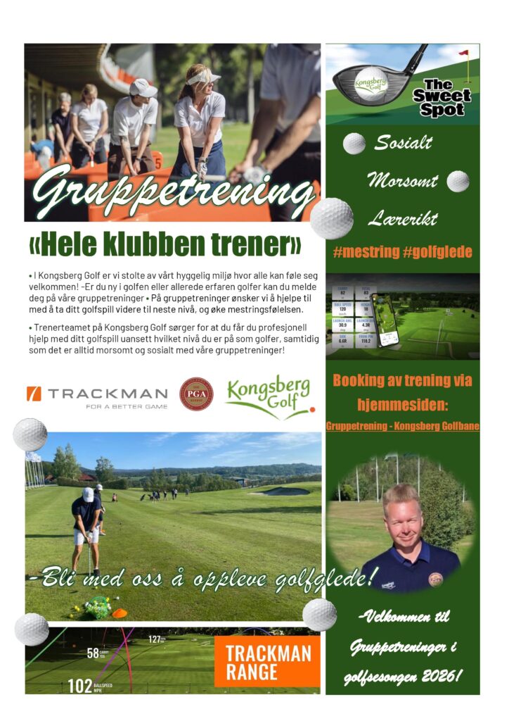 Påmelding til våre populære gruppetreninger i mai og juni 2026 er nå åpen • Vi tilbyr et bredt utvalg av gruppetreninger og et godt treningstilbud for alle våre medlemmer, uansett på hvilket nivå du er som golfer • Bli med å oppleve golfglede på et inkluderende treningsmiljø på Kongsberg Golf!